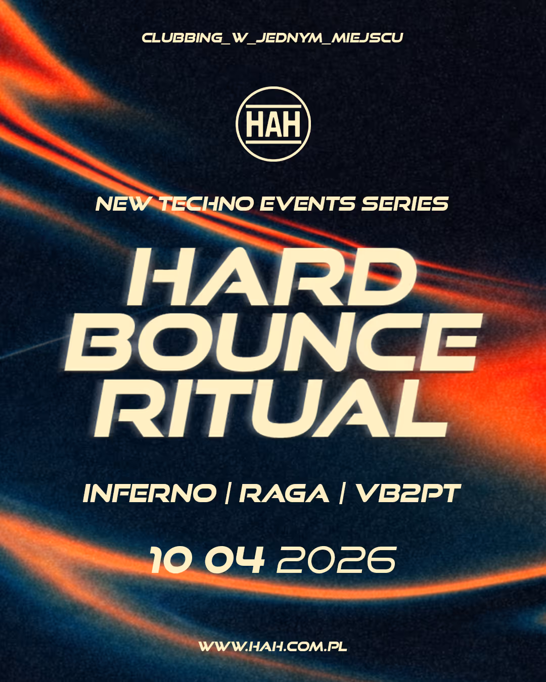 HAH: Hard Bounce Ritual to nowa seria wydarzeń techno ze stylem hard bounce w centrum. Energiczna, euforyczna, szybka i rytmiczna - muzyka, która będzie przybierać różne formy i każda z nich będzie dla Ciebie muzycznym i kulturowym odkryciem.